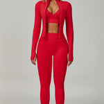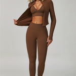 Conjunto 3 Peças The Empower: Casaco, Top & Leggings de Alta Performance