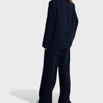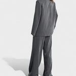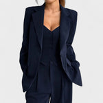 Este conjunto foi criado para mulheres que gostam de expressar confiança e elegância em cada detalhe. Composto por blazer, colete e calças de corte fluido, combina o charme clássico do fato feminino com um toque moderno e ousado.